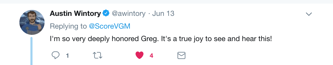 Ratings aside, the highlight of releasing these videos has by far been the response that Austin Wintory (Journey composer and all around good guy) gave to my tweets surrounding the "I Was Born For This" video.